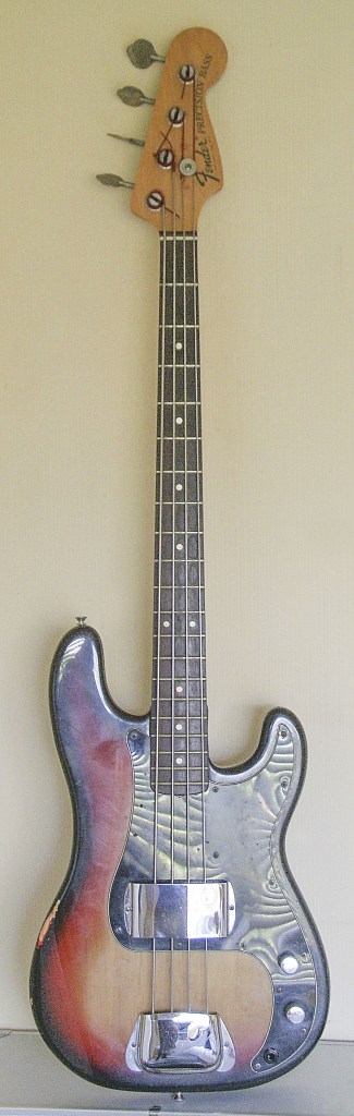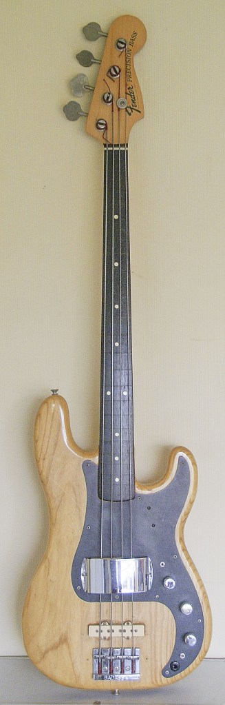 Andy plays a 1973 Fender Precision bass and a Fender Precision customised fretless bass with DiMarzio pickups, extra Jazz bass pickup by the bridge, Badass bridge, separate volume controls, and phase switches.